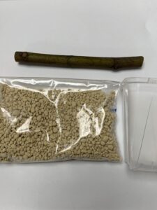 カップなどに水を入れ、穂木を1~2時間程度浸けて吸水させます。