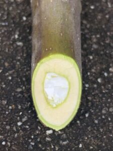 また、植物は傷口を修復しようと「カルス」(人間でいうカサブタのような組織)を形成します。このカルスが発根の土台となるため、切断面を広く確保することは発根促進に直結します。