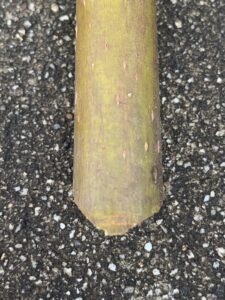 【なぜ斜めに切るのか?】斜めにカットすることで断面積が広がり、水の通り道である「道管」が大きく露出するため、吸水効率が格段に良くなります。