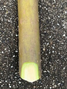 穂木の下部をナイフなどで両側から斜め45度を目安にカットします。